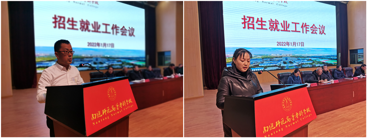 校长朱月萍总结了2021年度招生就业工作的主要成绩和存在问题,并对2022年工作进行了全面部署。学校党委副书记、纪委书记潘健宣读了表彰决定。随后,招生工作先进个人代表姜聪同志和就业工作先进集体代表石瑀同志分别作交流发言。