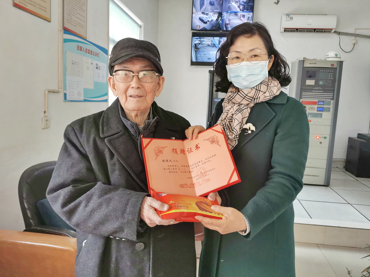 近日,我校98岁退休教师施燮元向学校教育发展基金会捐赠人民币两万元,以庆祝学校120周年华诞。朱月萍校长代表学校接受捐赠。