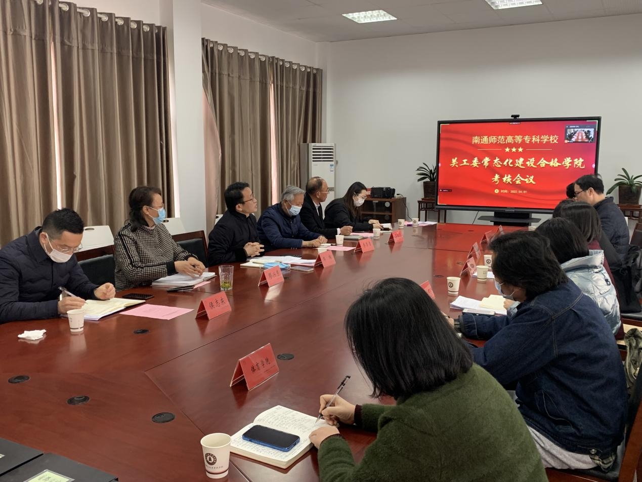 4月1日上午,学校在开发区校区时孙楼105会议室召开了关工委常态化建设合格学院考核会议,组织关工委常态化建设合格学院自查汇报,开展集体评议、现场调研、无记名测评。校关工委常务副主任李崇莹、常务副主任石俊元、原校关工委秘书长邵晓龙、各学院关工委主任及副主任参加了考核,如皋和海门的同志通过腾讯会议参会。会议由学工处处长、校关工委秘书长缪兴秀主持,学校党委委员、副校长、校关工委分管副主任都樾出席会议并讲话。