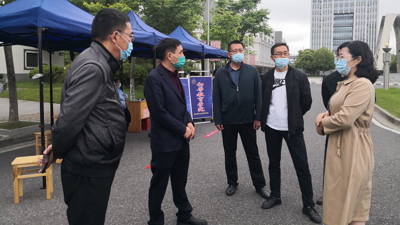 考生报到期间,党委书记刘锋、校长朱月萍、副校长杭斌等校领导分别在三个校区现场指导工作,及时解决各种问题。在现场碰头会上,刘锋同志鼓励值班工作人员以积极饱满的工作状态,做实做细考生返校工作的每一环节。他要求大家要不断加强管理,强化底线思维,完善所有防控环节,以敢打敢拼的精神状态、求实务实的工作作风,切实抓到位抓出成效,确保本次“专转本”考试组织工作安全有序、平稳平顺。 5月7日晚,刘锋书记和后勤、学工、安保等部门的负责同志参加了教育厅召开的视频点调会。