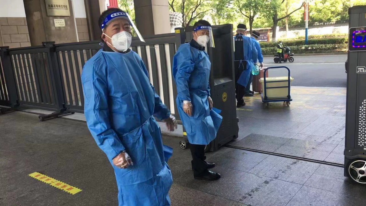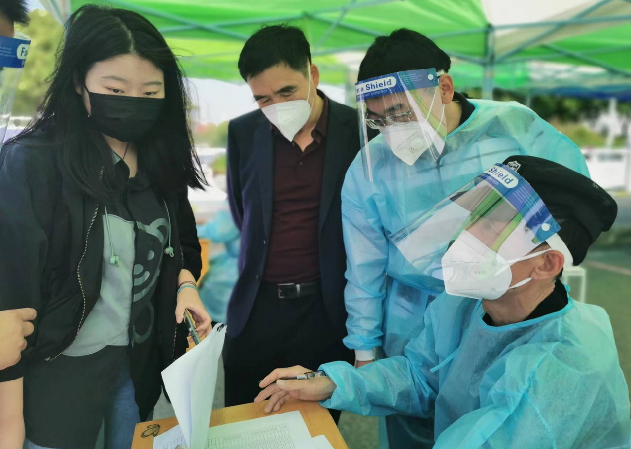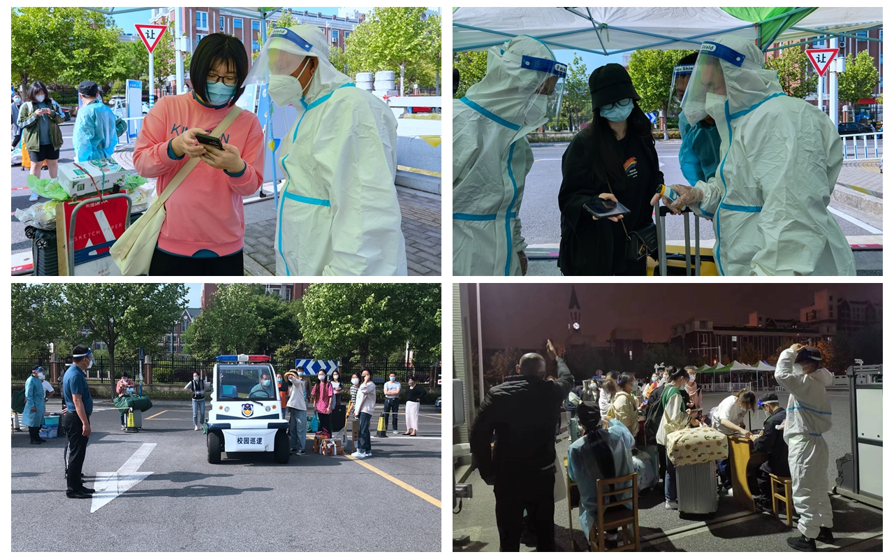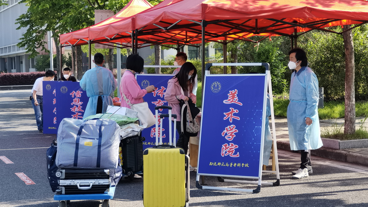 报到现场,各学院值班领导、安保、后勤、学工的同志身穿防护服,佩戴KN95/N95口罩、防护手套,冒着烈日一丝不苟地检查返校考生的“两码”、核酸检测报告并测量体温。后勤处在校门外设置临时隔离留观处和应急转运车辆。符合准入条件的考生,现场领取居住宿舍号、扫码购买餐券。考生凭宿舍安排号到宿舍区宿管员处领取钥匙,进入宿舍。