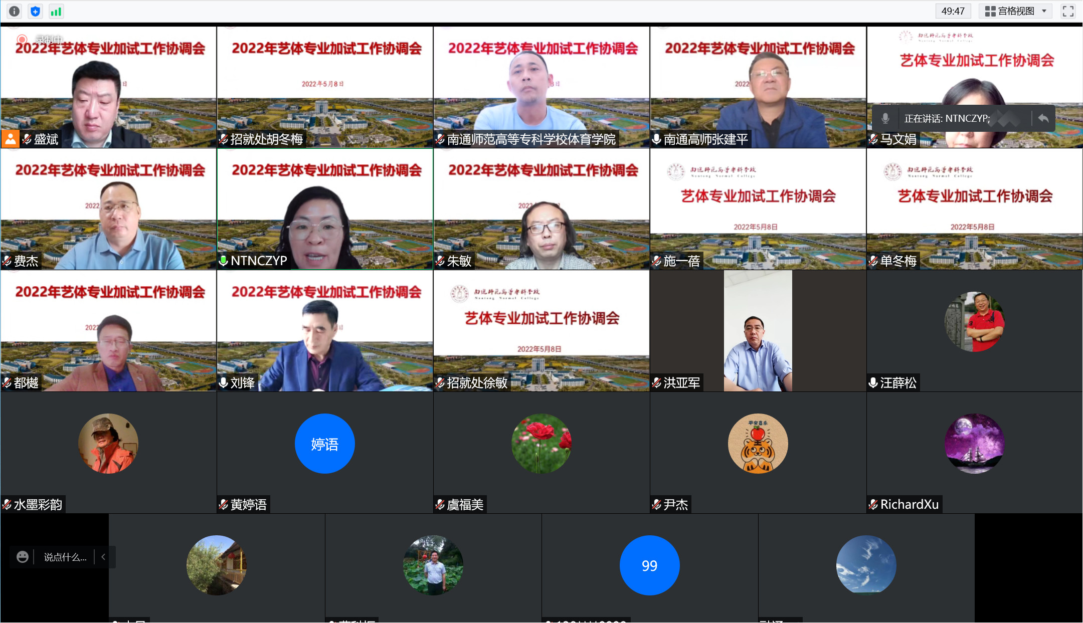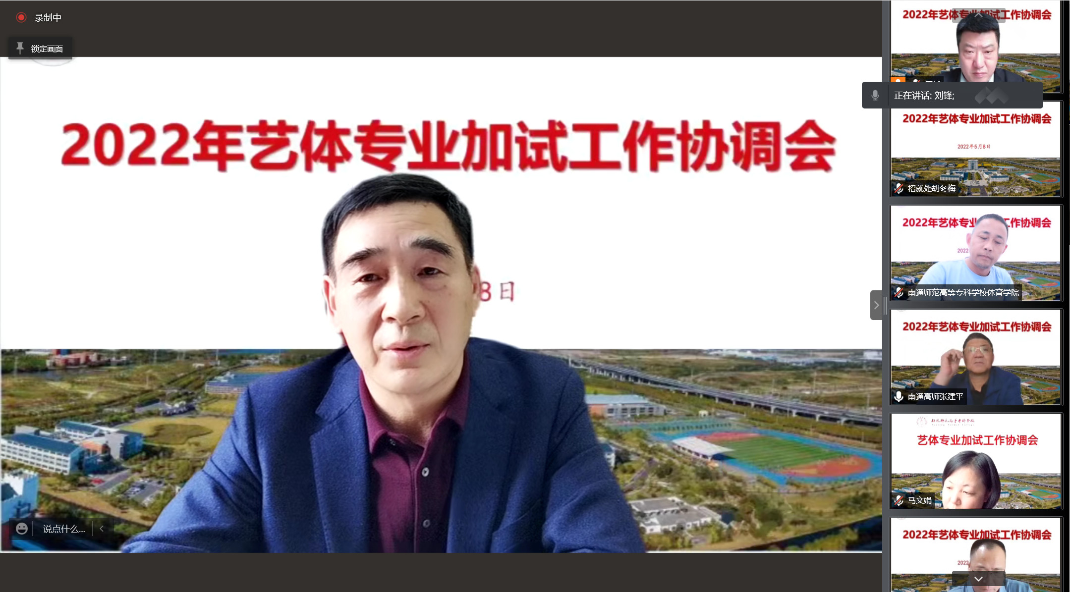 为做好疫情防控常态化背景下的艺体专业加试工作,5月8日下午,我校采用线上视频会议的方式,举行2022年艺体专业加试工作协调会。校党委书记刘锋,党委副书记、校长朱月萍,党委委员、副校长都樾出席会议。