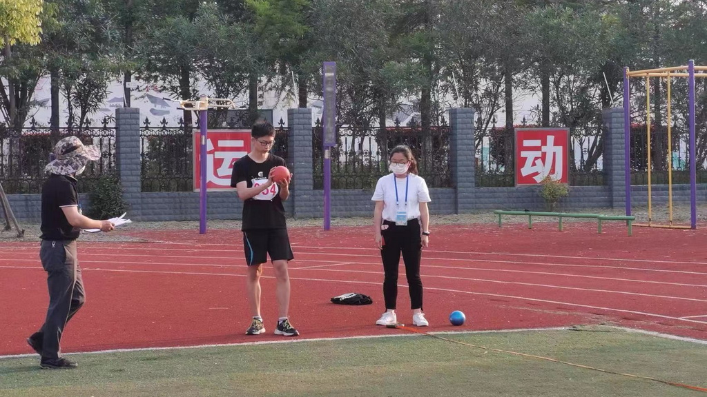 考场虽然只有一位考生,考试程序一样规范严格。体育学院杨山副书记仔细查验考场场地器材、明确考试要求,审计处姜聪科长认真做着成绩记录,监察处马文娟处长全程严格监督。考生准备充分,从容应考,顺利完成了体育加试三个科目的考试。