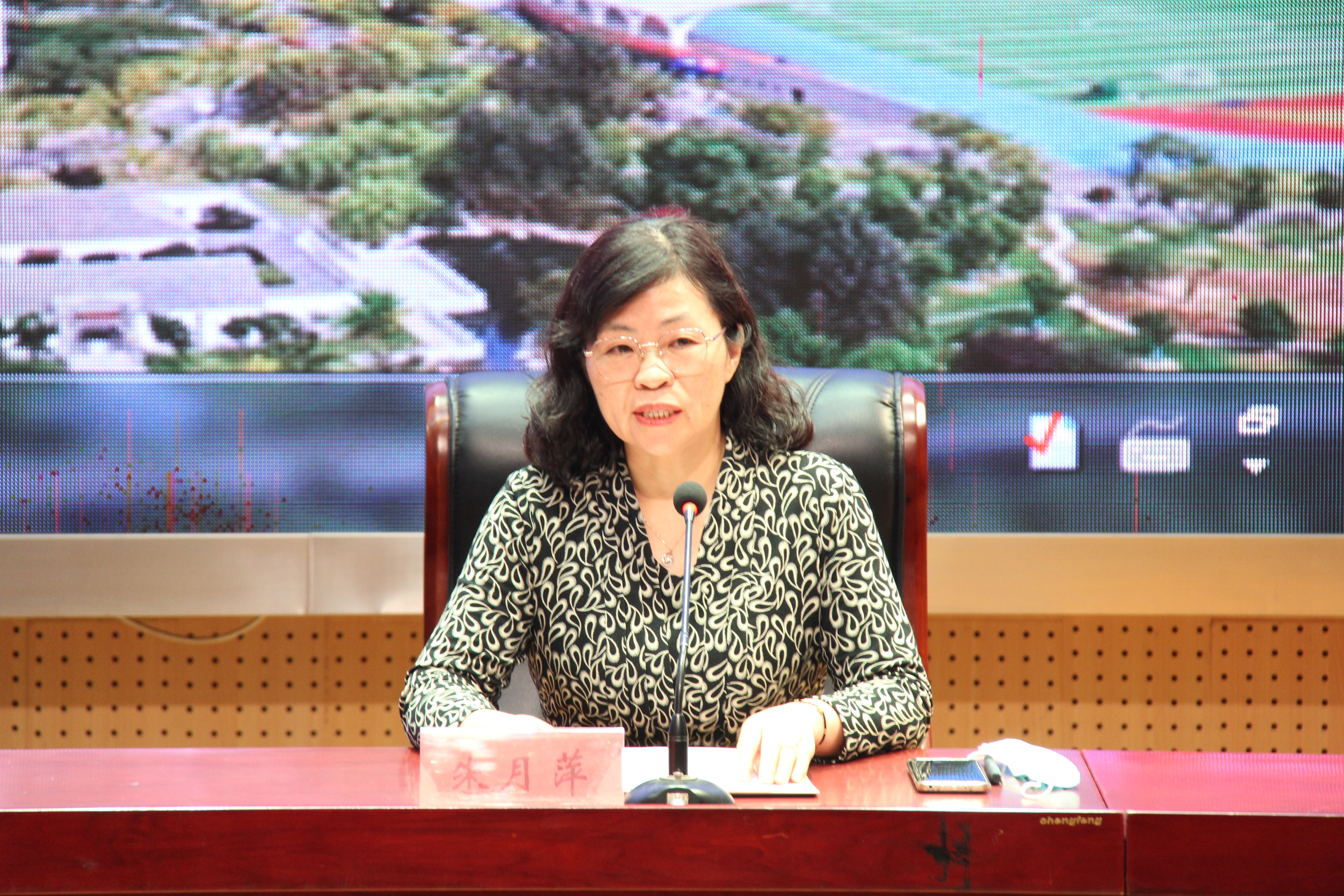 2022年5月24日上午,学校召开干部大会,校长朱月萍部署近期工作。