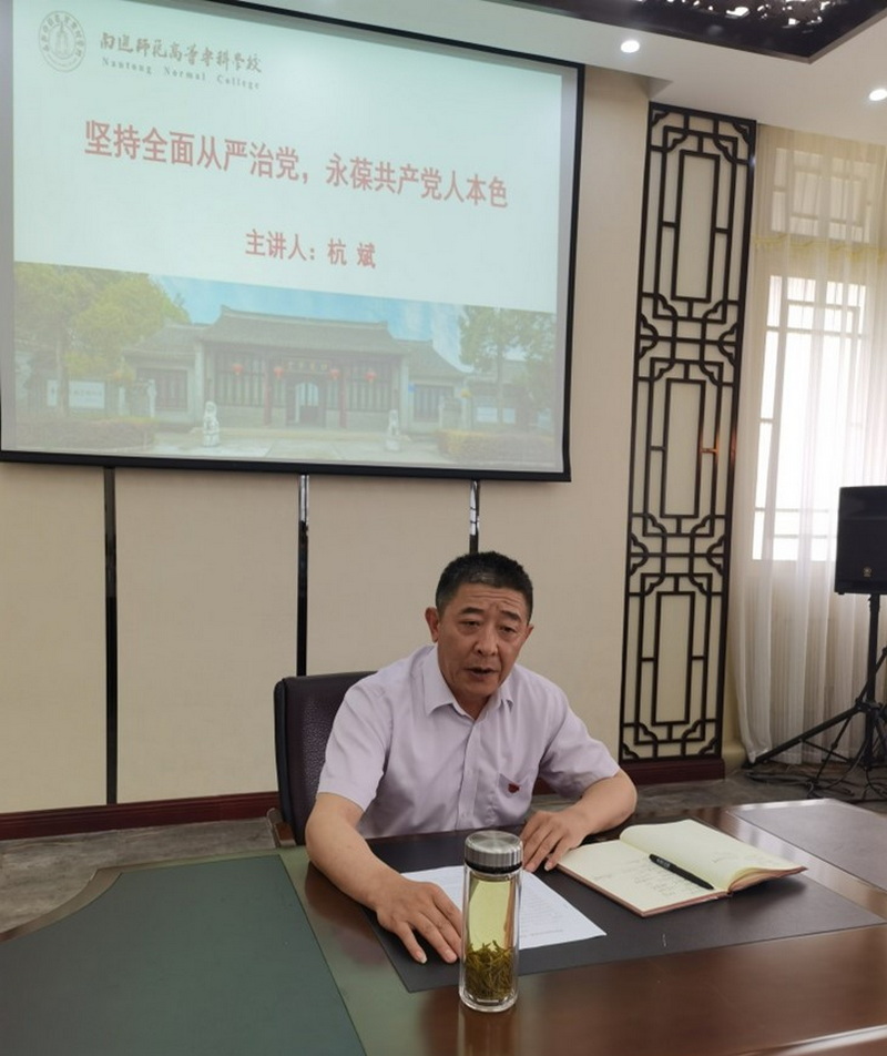 他首先分析党的十八大以来,我党开展的“打虎”“拍蝇”“猎狐”等系列反腐工作取得的成效。随后他指出今年是党的二十大召开之年,也是学校高质量发展的关键之年,作为党员领导干部,要从以下几个方面做到全面从严治党,永葆党员本色。一是以思想建设为基础,砥砺育人初心使命;二是以阵地管理为抓手,永葆清廉本色;三是以示范带动为引领,走好全面从严治党赶考路。最后,他强调每一位党员同志要始终保持自我革命的政治定力,营造勤政廉政、风清气正的干事氛围,充分发挥全面从严治党引领保障作用,书写党风廉政建设的新篇章,以优异成绩迎接党的二十大胜利召开。