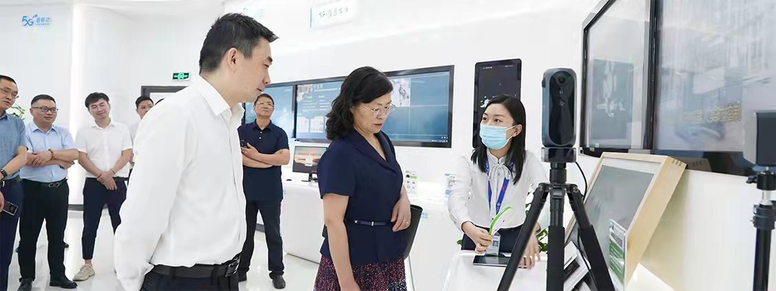 在南通移动王恺副总经理的带领下,朱校长一行参观了南通移动5G智慧体验馆,该馆依托独创的一键切换八大场景模式及新一代智能化的互动体验环境,展示了运营商在5G通信、物联网、大数据、云计算、IDC等新兴技术场景业务的智能应用。