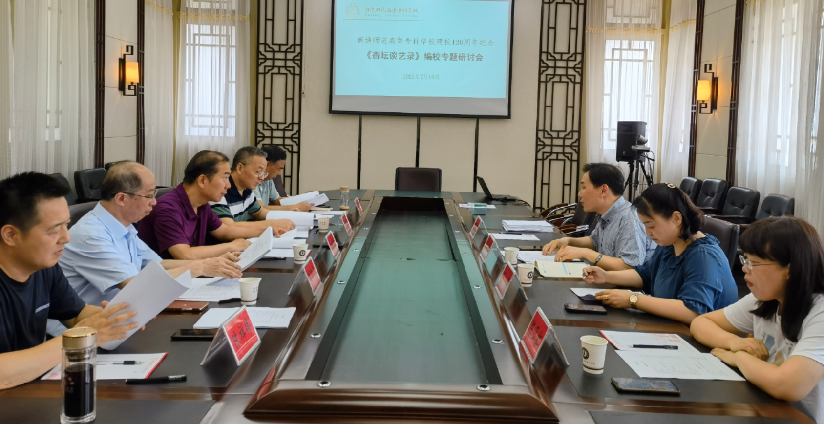 7月10日上午,建校120周年纪念校友特级教师《杏坛谈艺录》编校专题研讨会在如皋校区召开。《杏坛谈艺录》征集工作小组全体人员参加研讨,校党委委员、副校长孙国春出席会议并讲话。
