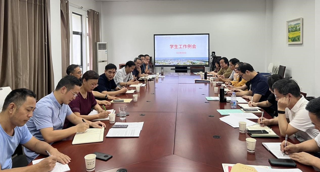 9月8日下午,学校在开发区校区时孙楼105会议室召开秋季学期第二次学生工作例会,布置学生返校相关事项,讨论疫情防控专题工作。党政办公室主任袁海生、各学院书记及分管学生工作领导、学工处全体人员参加了会议。会议由学工处处长缪兴秀主持,学校党委书记刘锋出席会议并讲话。