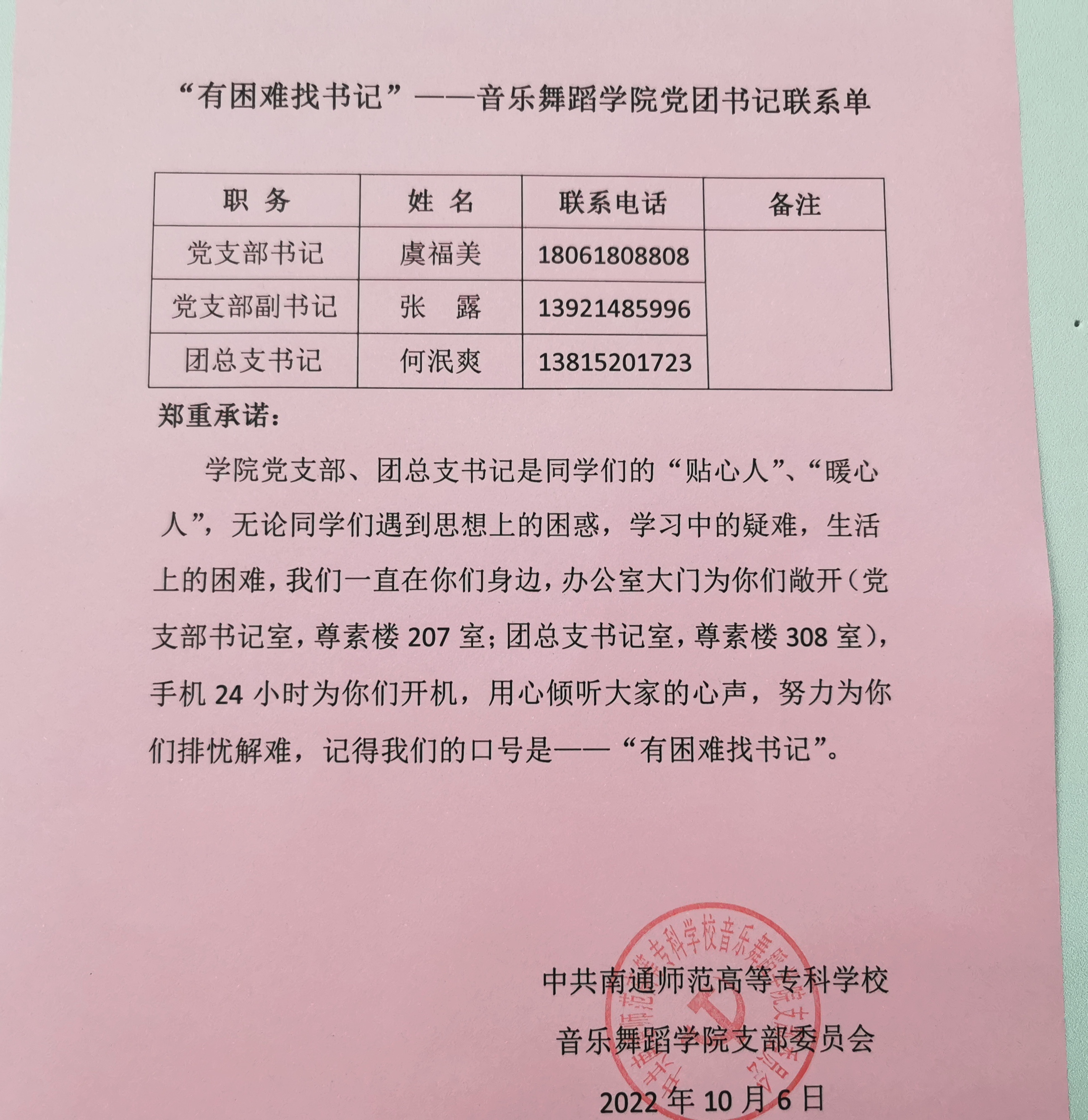 为坚决防止疫情在校园传播、构筑疫情防控牢固防线,学校党委决定实行学校疫情应急专班24小时值班制度,党委书记刘锋、校长朱月萍分别带领由相关部门、学院负责人和辅导员组成的A、B岗值班人员,做好特殊时期学校的综合协调、宣传引导、教育教学、后勤保障、卫生消毒、核酸检测、信息统计、校园管理等多项工作,确保学生在校学习生活健康、充实、有序。