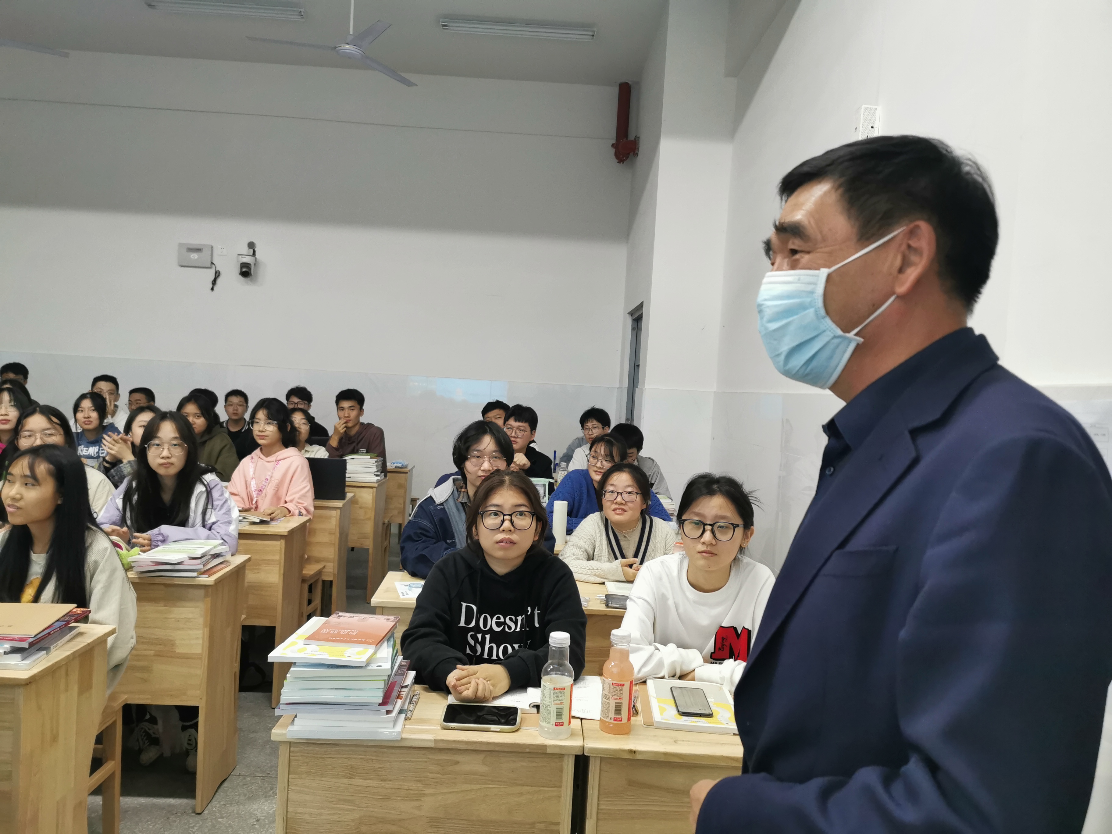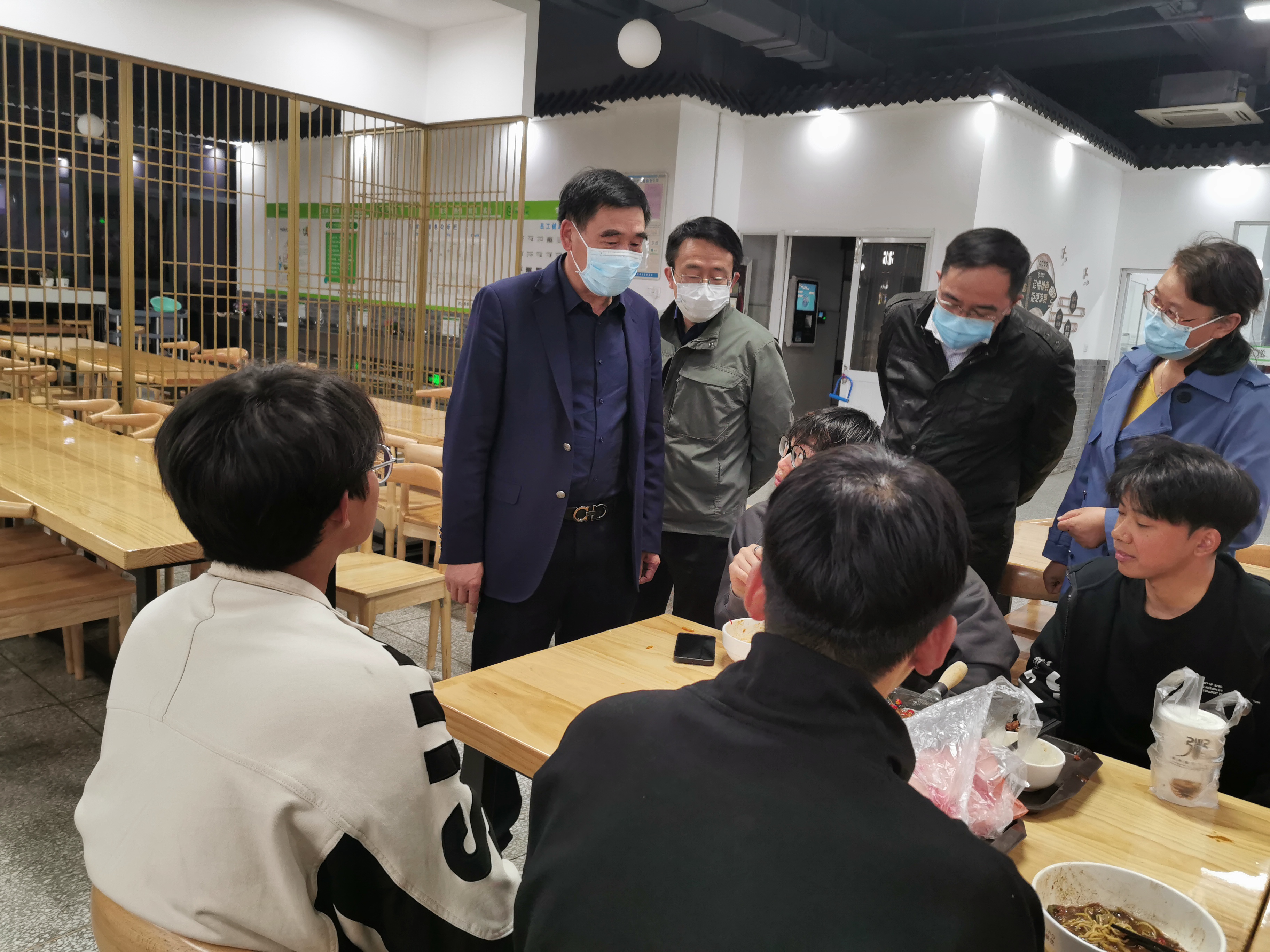 18点,刘锋书记、都樾副校长先后走进食堂、水果店,了解学生饮食和生活情况,随后又走进学院教室,检查学生夜自修学习情况。