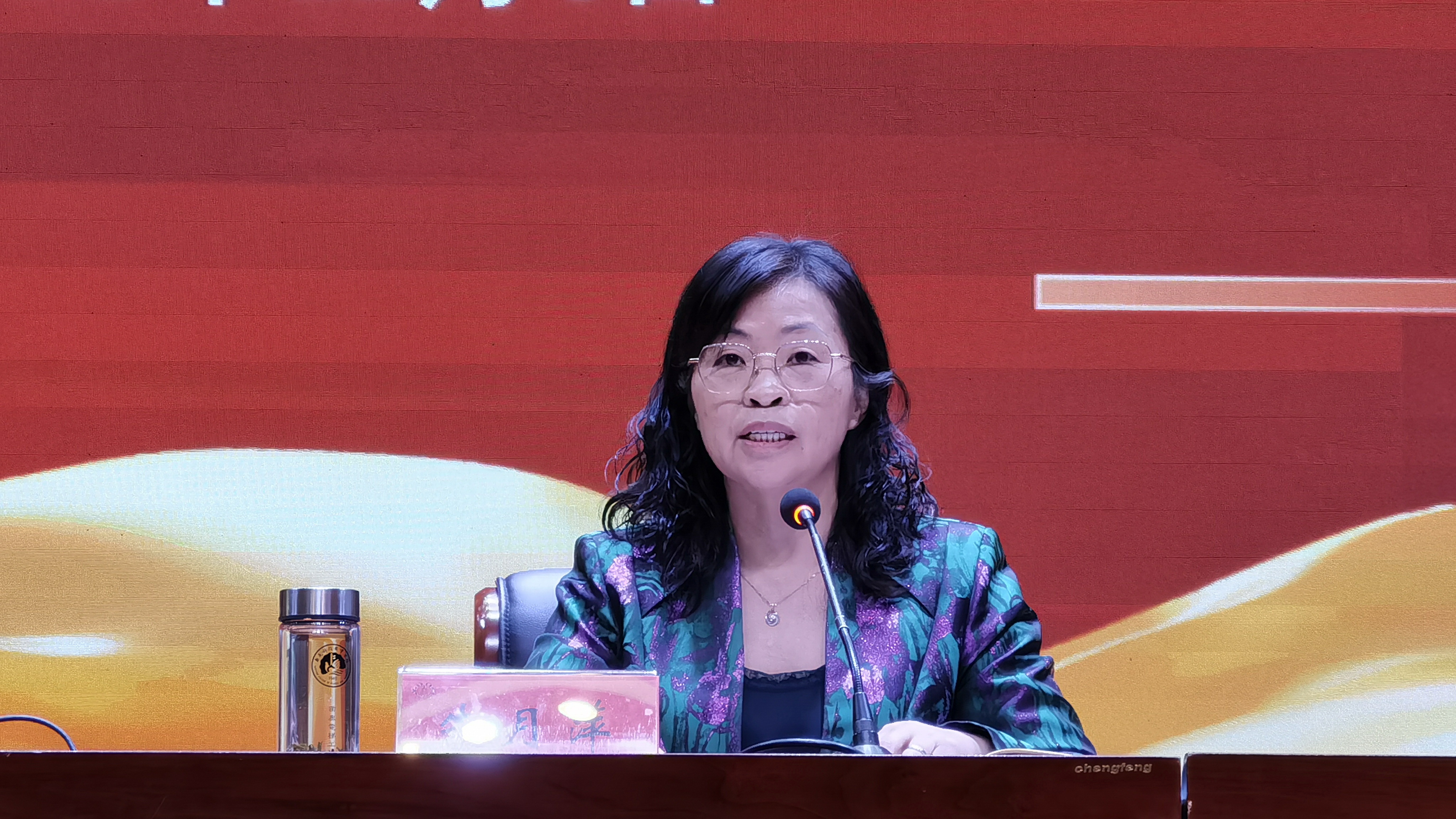 朱月萍校长讲话。 她指出,尽管今年疫情反复肆虐,但相关职能部门全力保障,全体师生共同努力,克服了种种困难,在学校内涵建设方面取得了不少成绩,可圈可点,可喜可贺。她希望全校师生以取得佳绩的师生为榜样,不断与自我的惰性和惯性进行斗争,跳出舒适圈,真正在教学相长中互相鞭策,互相成就。