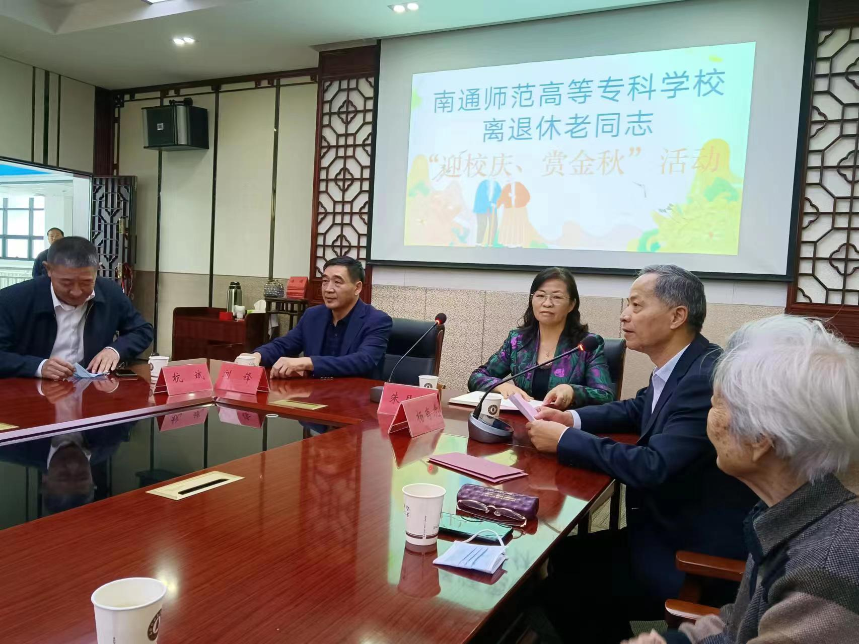 11月12日上午,我校离退休同志“迎校庆、赏金秋”活动在开发区校区举办。来自原南通校区、海门校区共四十多位老同志参加了本次活动。人事处、校区管理办、后勤处和工会相关工作人员陪同参加。