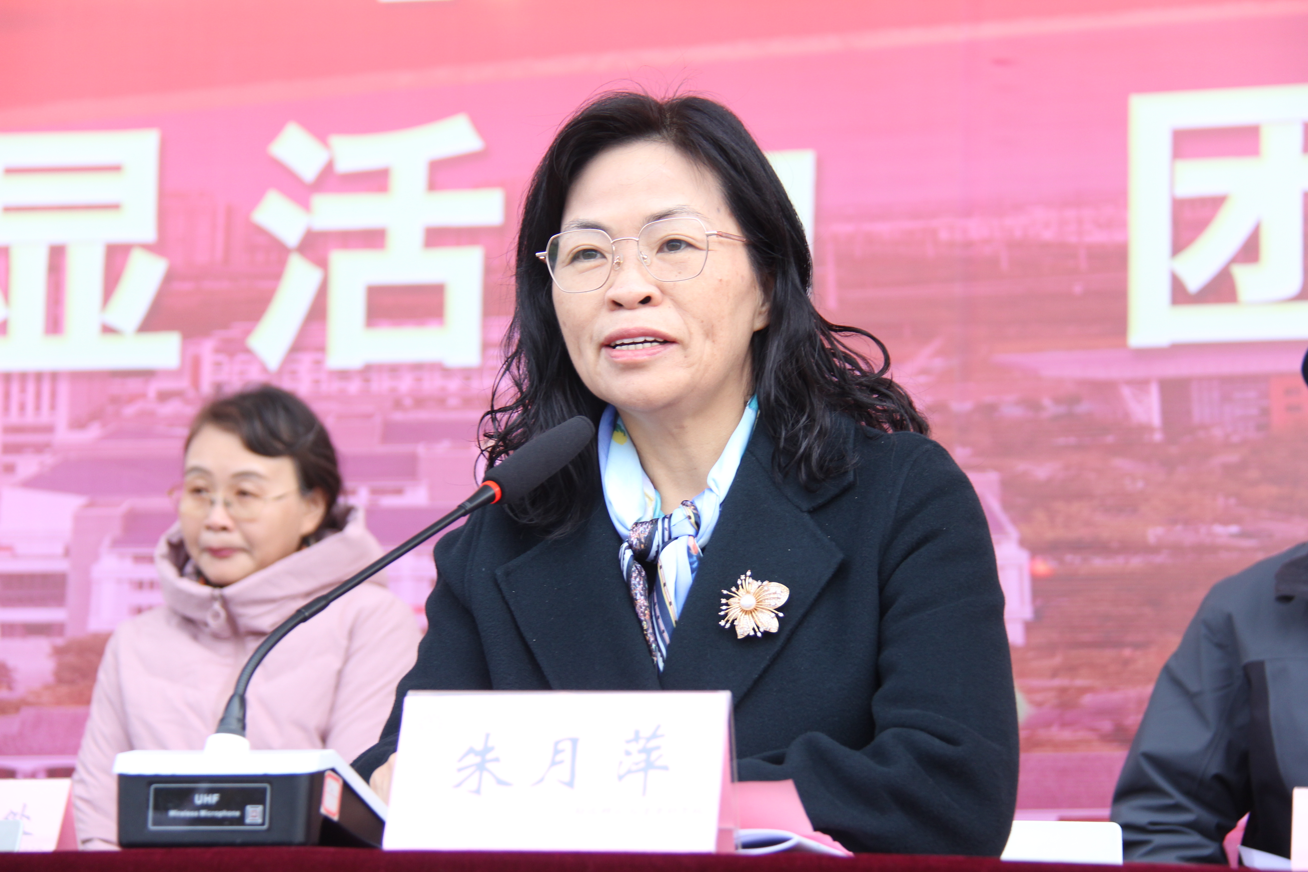 校长朱月萍致开幕词。她代表学校党政,向本届体育节如期举行表示热烈的祝贺,向辛苦筹备的老师和同学们表示衷心的感谢,向全体运动员、裁判员表示诚挚的慰问。她指出,举办体育节,是健康体魄、健强意志、健全人格的有力举措;是锤炼奋发向上、顽强拼搏的意志品质,实现以体育智、以体育心的有效途径;是振奋精神、凝聚力量,加快建设高水平、有特色的师范院校的重要抓手,也是学校发展体育运动、增强师生体质、弘扬体育精神的一贯做法。通过举办体育节,对学校素质教育的成果来一次大验收,对全体师生员工综合素质和精神面貌来一次大检阅。