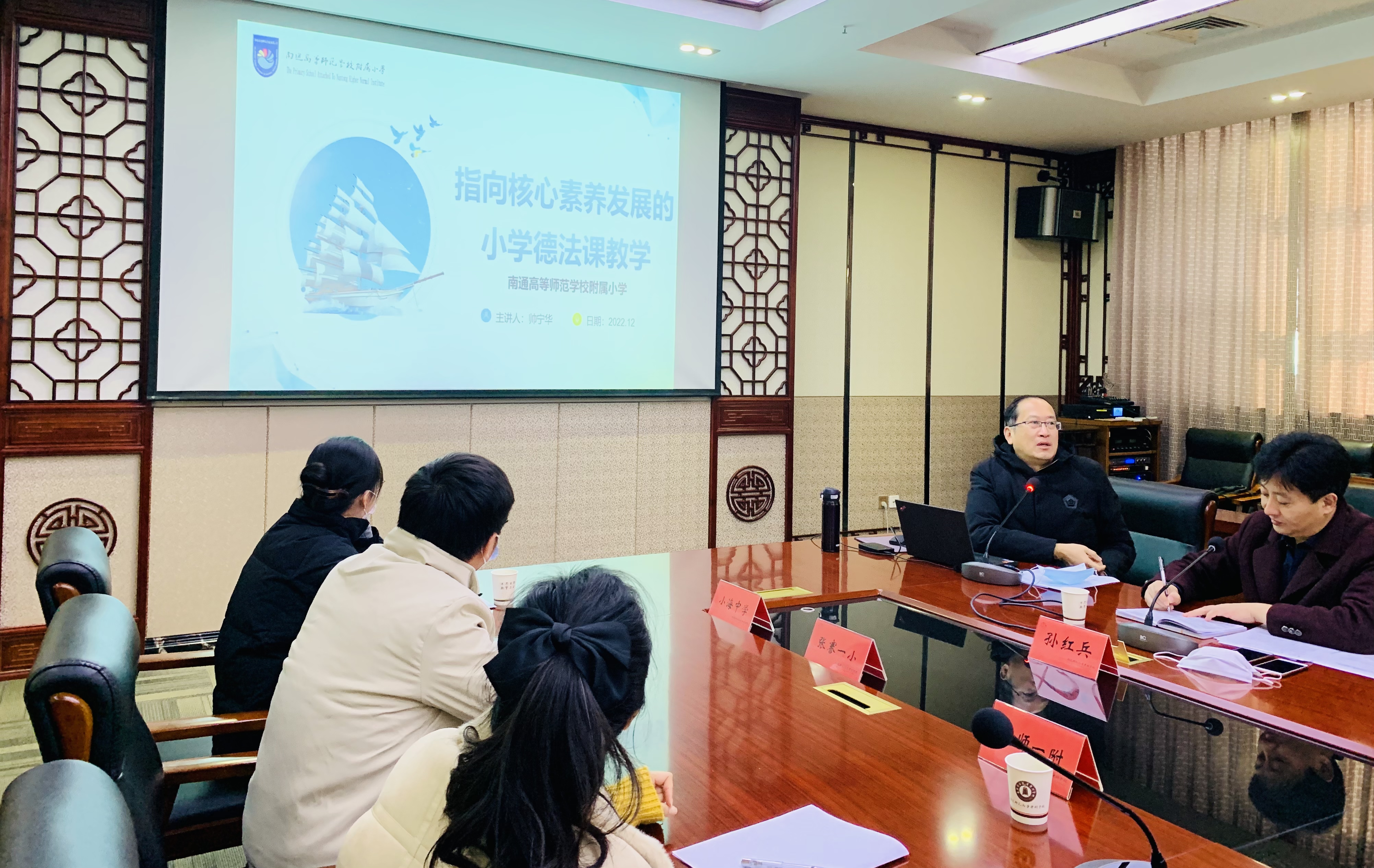 研讨会上,南通师范高等专科学校附小校长、江苏省特级教师、正高级教师、江苏省大中小学思政课一体化建设专家指导委员会委员帅宁华,做专题讲座《指向核心素养的道德与法治课堂实践》。帅教授围绕相关政策法规,对义务教育阶段道德与法治课程的性质、理念、核心素养等做了独到的解读;还结合自己的教学实践,就指向核心素养培养的道德与法治课堂如何实施进行了详细的辅导。