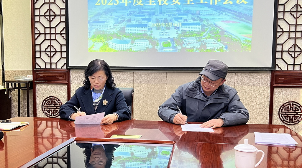 朱月萍校长代表学校和各二级单位主要负责人签订了《南通师范高等专科学校2023年度社会治安、综合治理、法制建设、消防安全工作责任书》。