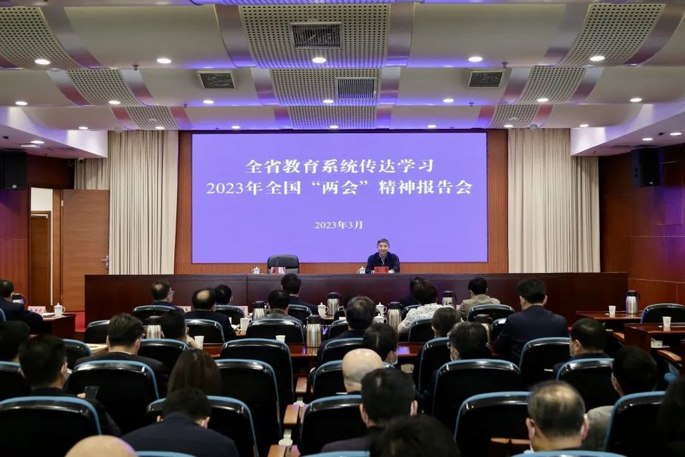 3月15日,全省教育系统传达学习2023年全国两会精神报告会在宁召开。会议认真落实全省传达学习贯彻全国两会精神会议的部署要求,邀请全国人大代表、中国工程院院士、河海大学党委书记唐洪武,全国政协委员、南京师范大学党委书记王成斌,全国人大代表、淮安市新安小学校长张大冬传达习近平总书记参加十四届全国人大一次会议江苏代表团审议时的重要讲话精神和全国两会精神。省教育厅厅长、党组书记、省委教育工委书记江涌主持会议。
