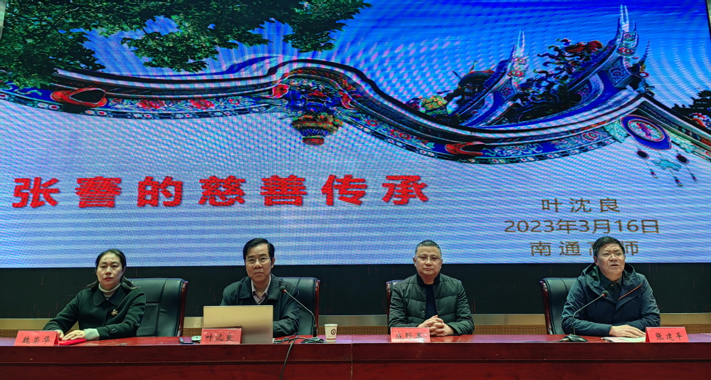 3月16日下午,中华慈善博物馆慈善文化传播使者、南通慈善总会副会长叶沈良受邀来我校参观指导,并给初等教育学院部分师生做《张謇的慈善传承》讲座。教务处处长张建平主持讲座,校党委委员、组织宣传部部长魏荣华、中华慈善博物馆副馆长成野军参加活动。