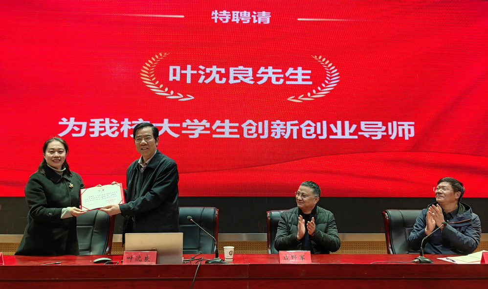 魏荣华代表学校聘请叶沈良副会长为我校创新创业导师。