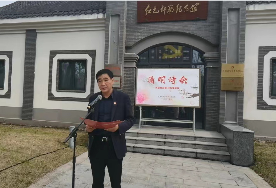 清明追思,家国永念。4月7日上午,机关第一党支部在红色师范纪念馆前,举行了一场别开生面的支部主题党日活动——“清明诗会”。机关第一党支部的同志们和朗诵主持社团的同学以诗歌朗诵的形式追思先贤、缅怀先烈。