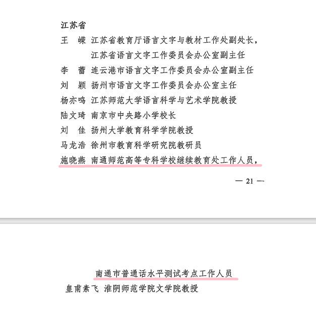 我校继续教育管理处施晓燕同志作为南通唯一人选荣获国家通用语言文字推广普及先进个人。