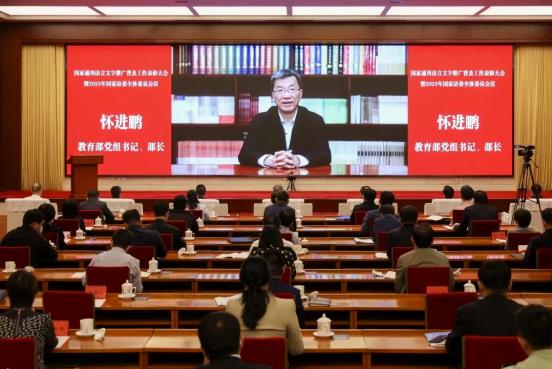 5月10日,国家通用语言文字推广普及工作表彰大会暨2023年国家语委全体委员会议在京召开,教育部党组书记、部长怀进鹏作视频讲话。