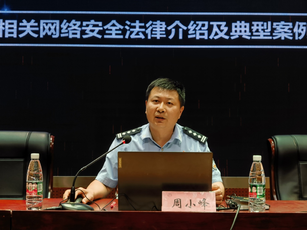 周小峰为大家作了题为《提高政治敏感,落实主题责任,筑牢网络屏障,保护数据安全》的讲座。讲座分为当前做好网络和数据安全工作的重要意义、网警视角下的常见网络安全问题及解决方法、相关网络安全法律介绍及典型案例等三个模块,内容权威丰富、针对性强。通过培训强化师生的网络安全意识,推动落实网络安全责任制,提升网络安全和信息化工作水平,为教育数字化转型提供组织保障和人员保障,支撑引领教育高质量创新发展。