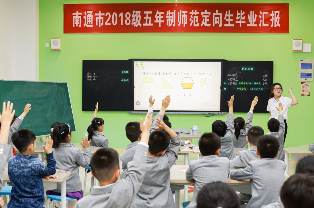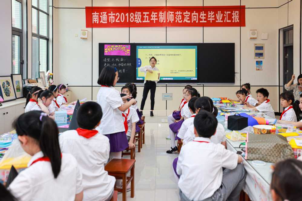 入职宣誓仪式结束后,2018级师范定向生还进行了毕业汇报活动,来自南通各地的教育专家为12节公开课评课。