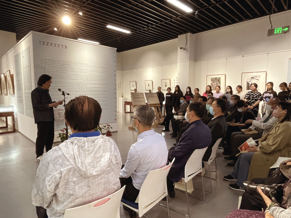 朱敏在介绍活动准备情况时指出,为筹备本次活动,学院的老师多次到启东他的工作室“奋蹄居”商议捐赠事宜,每次都被丁老先生的爱母校、爱专业的精神打动。学院为了表达对丁老先生的感激与敬意,决定成立以丁老姓名命名的“丁立松水印版画传习所”,以此来进一步推动学院的版画教学和提高对本土技艺研究、传承的力度与深度。