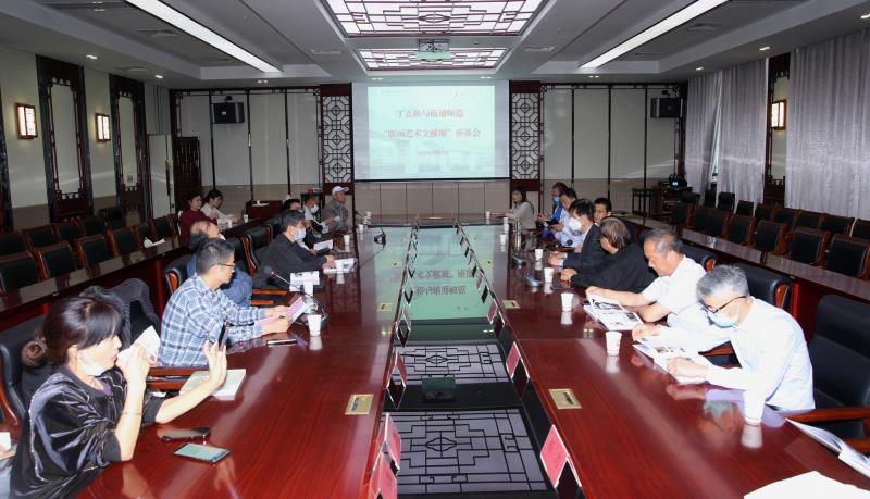 活动结束之后,参加版画展陈与捐赠仪式的领导、专家以及美术学院的部分老师在图文信息大楼的12楼会议室举行了“丁立松版画艺术”座谈会。座谈会由学院吴伟老师主持。