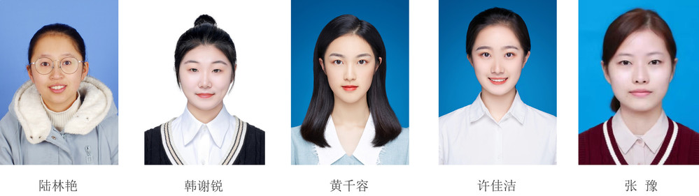 陆林艳(初等教育学院)、韩谢锐(学前教育第二学院)、黄千容(美术学院)、许佳洁(管理学院)、张豫(信息技术学院)