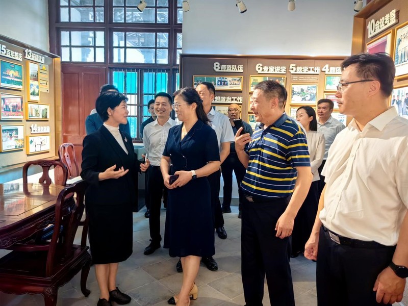 顾厅长一行首先参观了中国师范教育博物馆。顾厅长表示,近百年来,从这里走出去的一批批优秀师范生,为中国基础教育奉献了青春,其中不少人已成长为教育界栋梁之才,他们是中国教育的基石与脊梁。她指出,师范院校是确保教师队伍建设的“源头活水”,是培养时代新人的关键所在,希望学校肩负起教育强国的师范担当,写好时代答卷。随后朱校长就如皋校区开学工作准备情况向顾厅长作了简要汇报。顾厅长充分肯定了校区开学工作的积极筹备和教育教学工作的井然有序。