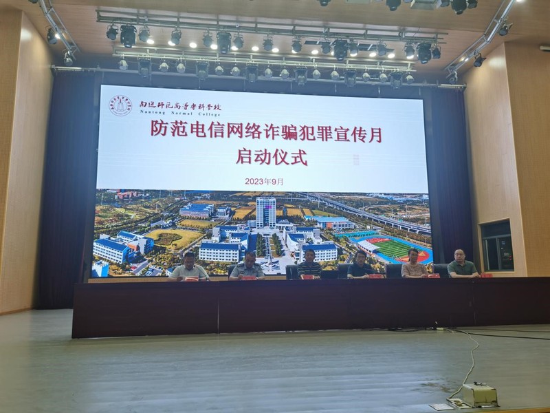 为深入贯彻全国、全省打击治理电信网络新型违法犯罪工作会议精神,按照全省反诈“百日行动”总体部署,以及《全省防范电信网络诈骗犯罪“蓝盾”集中宣传行动方案》《省教育厅省委政法委省公安厅关于开展全省教育系统“无诈校园”创建活动的通知》等文件要求,9月19日下午,我校在开发区校区大报告厅举行了防范电信网络诈骗犯罪宣传月启动仪式,其他校区的学生通过在线直播观看。党委委员、副校长杭斌,党委委员、副校长都樾,南通市公安局开发区分局刘斌出席仪式,参加活动的还有学校相关单位负责人,各学院分管学生工作领导,反诈专项负责老师,部分教职员工、学生代表等。启动仪式由安全保卫处处长沙书俊主持。