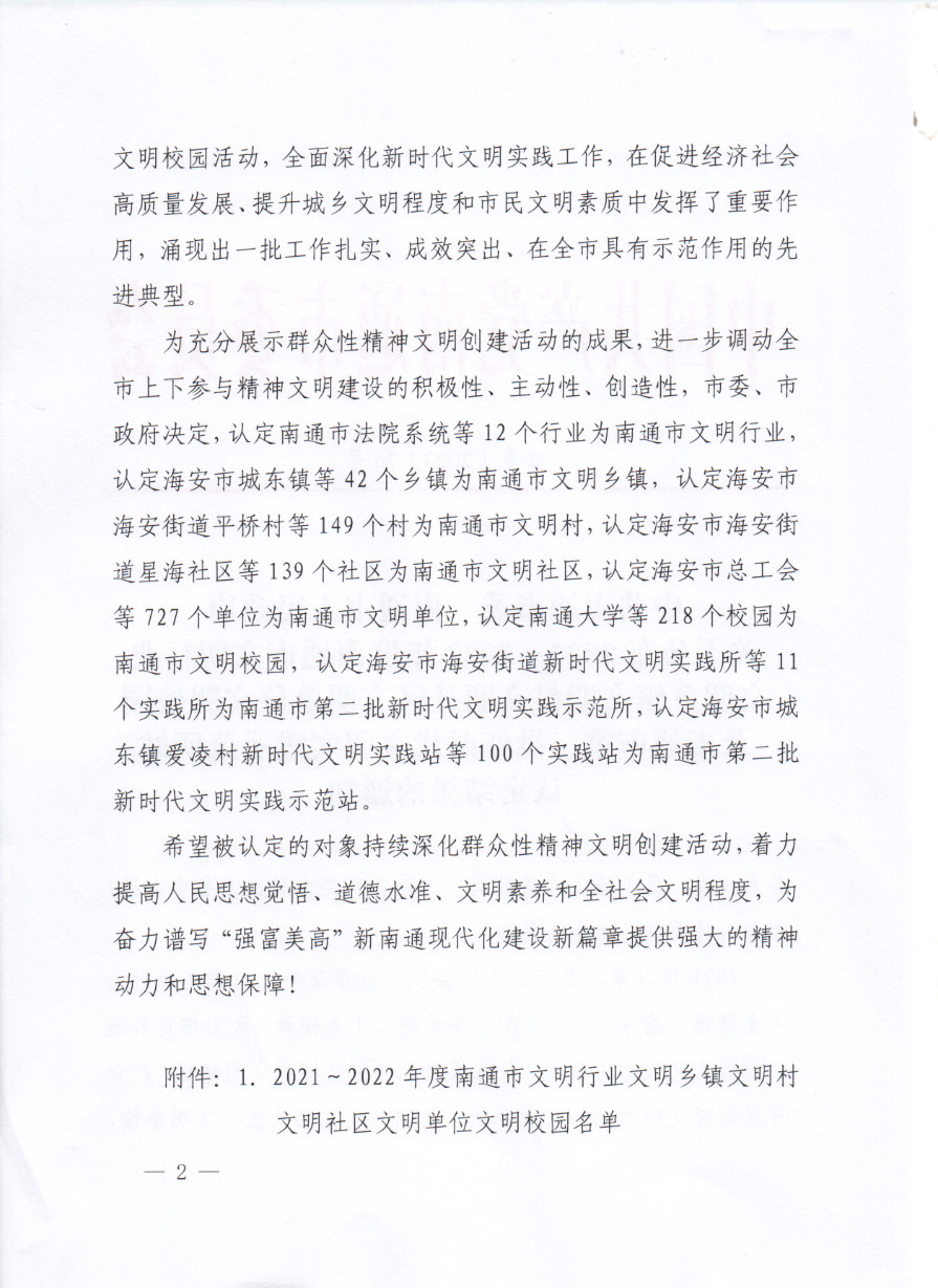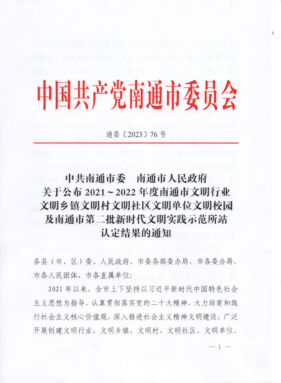 喜报 | 我校荣获2021-2022年度南通市文明校园称号