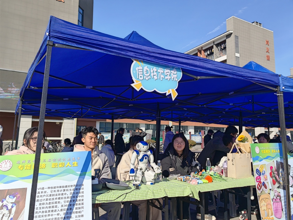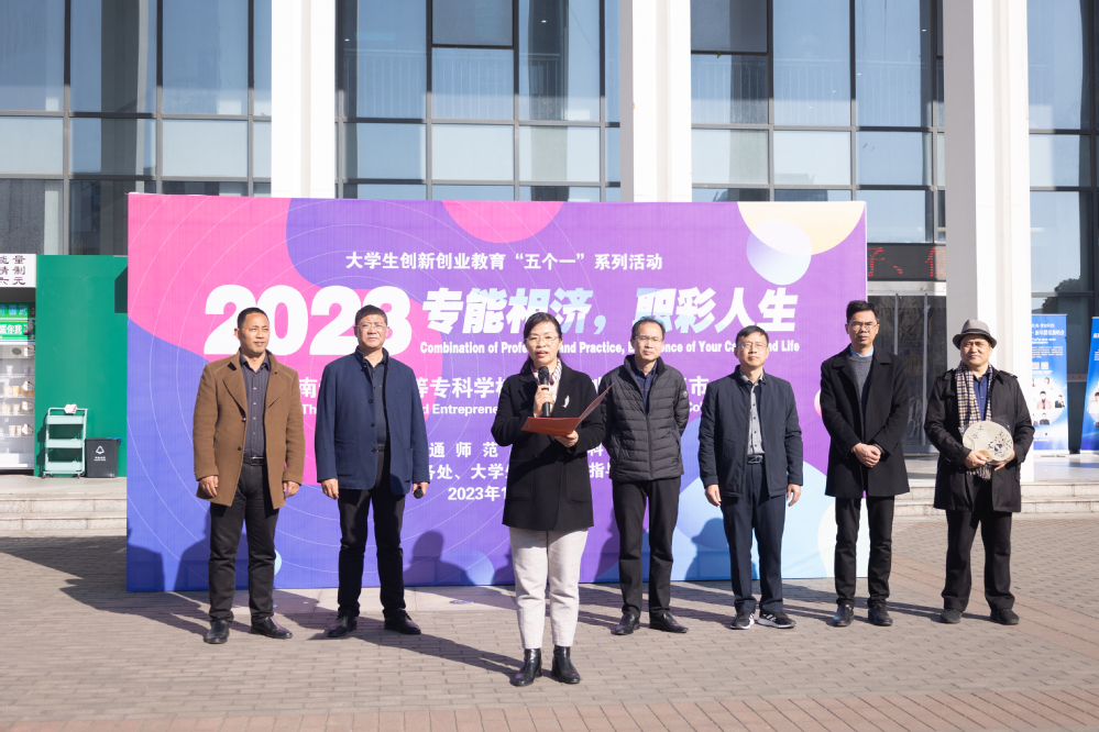 为大力支持和推进创新创业教育工作,用创新创业推动就业创业,2023年12月8日,我校隆重举办第三届创新创业集市。党委副书记、校长朱月萍致辞并宣布开市,学校大学生创新创业工作领导小组成员、各二级学院分管创新创业工作的领导,以及项目组学生和指导老师出席了本次活动。