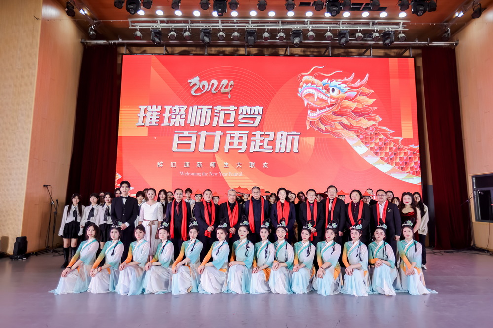 为学习贯彻习近平新时代中国特色社会主义思想,弘扬“五个师范”精神,展示学校内涵建设和育人成果,提升师生的凝聚力和向心力,12月28日,由党委宣传部、工会、团委联合举办的“璀璨师范梦 百廿再起航”——南通师范高等专科学校“辞旧迎新师生大联欢”在图文信息中心大报告厅隆重举行。学校党委班子、纪委班子成员,各学院领导、师生代表,教职工代表以及退休教职工代表参加联欢。