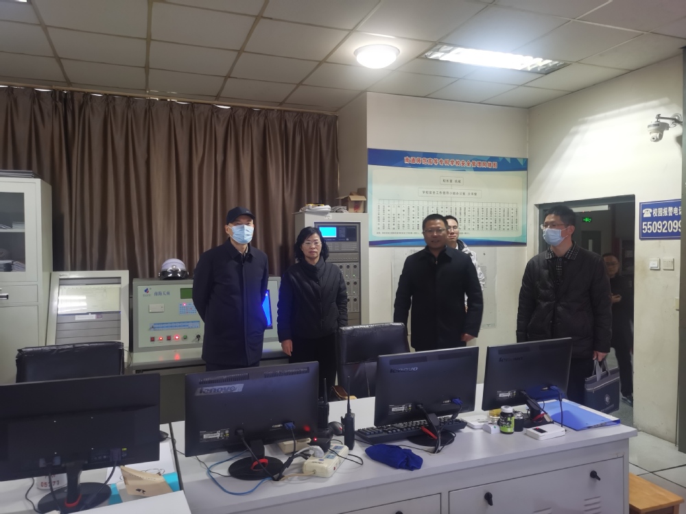 检查组先后来到学校传达室、监控室等场所,对校园监控系统、消防安全系统等进行了实地检查和指导,并询问了学校寒假期间师生在校情况,仔细查看了值班工作记录本。