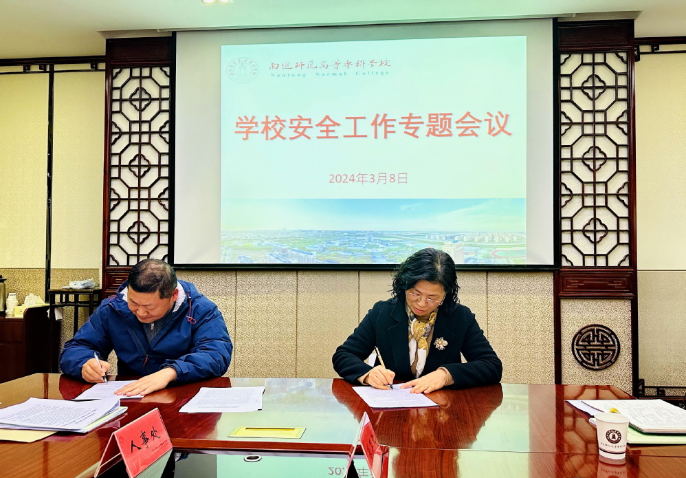 副校长杭斌总结回顾了学校2023年度安全工作,他强调,要切实做好开学初期安全稳定工作,在思想上高度重视,深刻汲取有关案例教训;要在行动上狠抓落实,切实分析查摆风险隐患,加强协同配合,形成线上线下合力。会上,各部门、各学院和学校签订了安全责任书和网络安全承诺书。