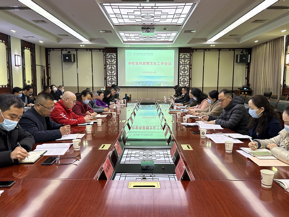 3月14日上午,学校宣传思想文化工作会议在图文信息中心12楼会议室召开。党委副书记陈玉君出席会议并讲话,党委委员、宣传部部长马文娟主持会议。各学院党支部书记、各部门单位负责人及宣传部全体人员参加会议。