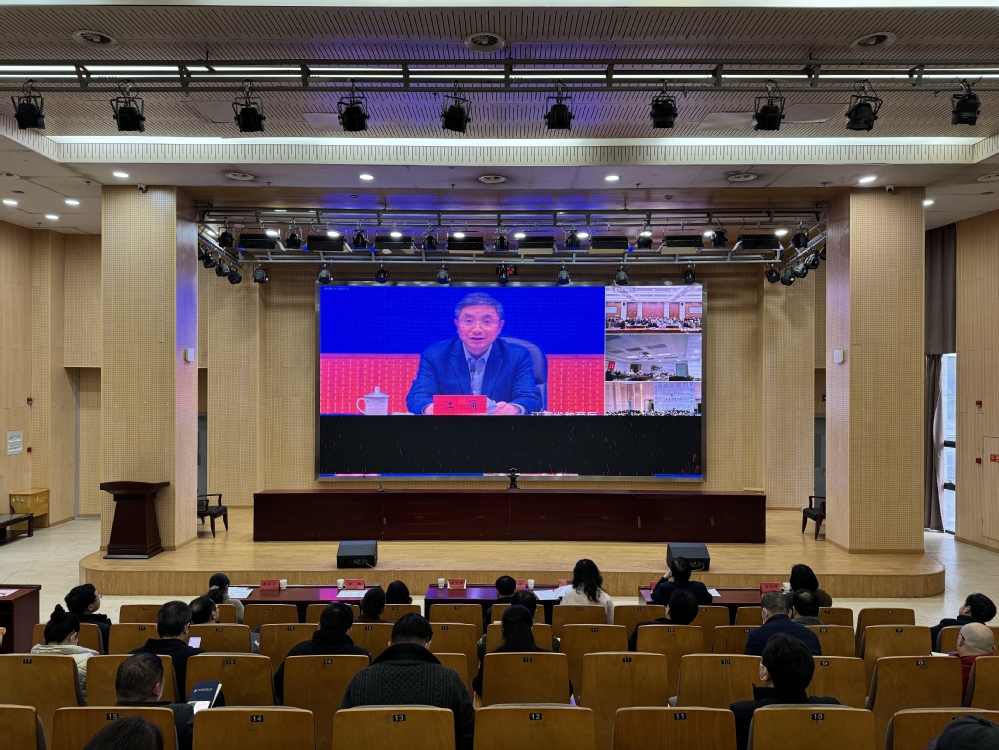 3月14日下午,全省教育系统传达学习贯彻2024年全国两会精神会议召开。各高校设视频分会场。我校领导班子成员、有关部门负责人、基层党组织负责人和党员代表在图文信息中心小报告厅参加视频会议。