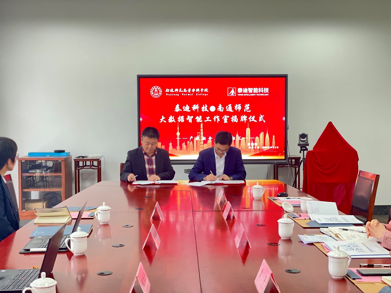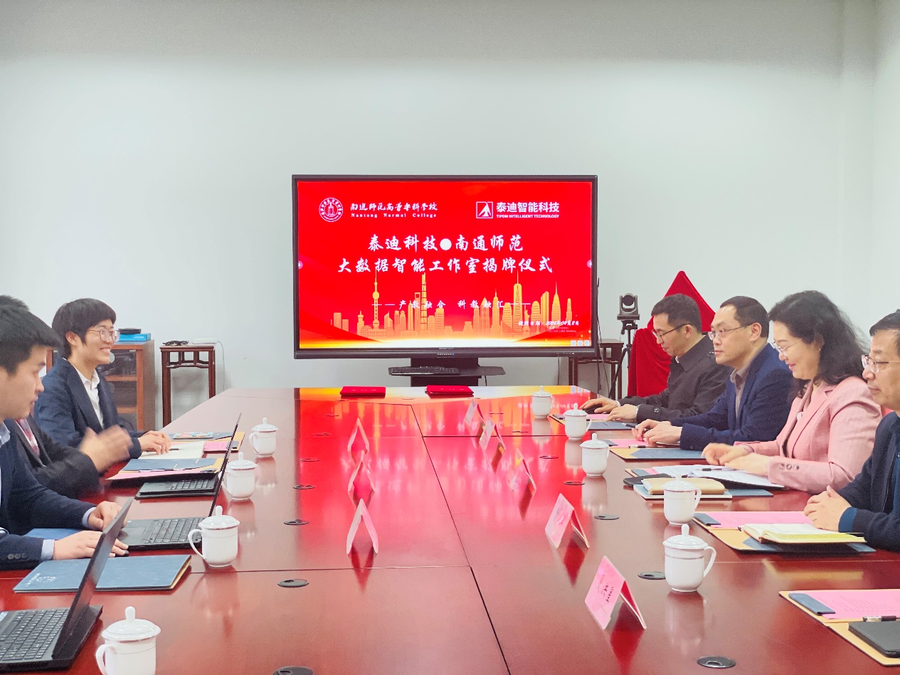 为促进毕业生高质量就业,拓宽就业渠道,加强校企合作,4月2日,泰迪智能科技股份有限公司上海分公司总经理彭艳昆来校出席南通师范高等专科学校“泰迪科技·南通师范大数据智能工作室”签约揭牌仪式。学校党委副书记陈玉君、科技处处长曹军、信息技术学院支部书记陆永来、院长夏洪星、副院长曹均平出席了本次仪式。