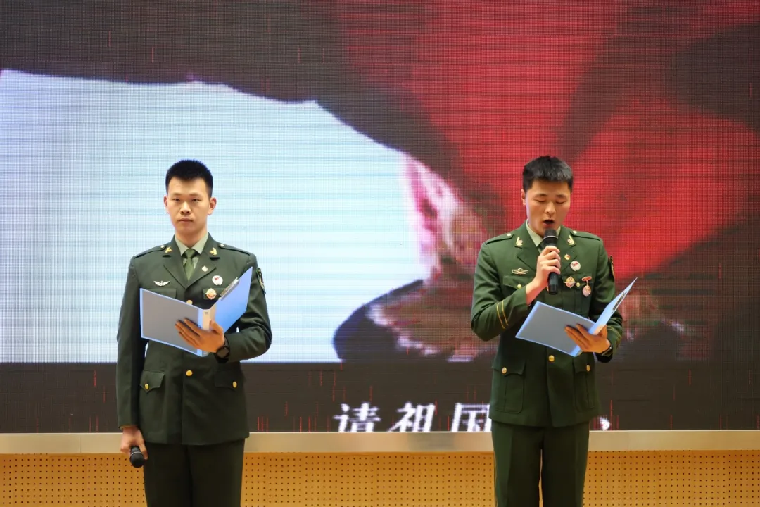 退伍军人代表为大家带来朗诵,字字铿锵,掷地有声,军人的信仰之声在每一位同学心中回响。