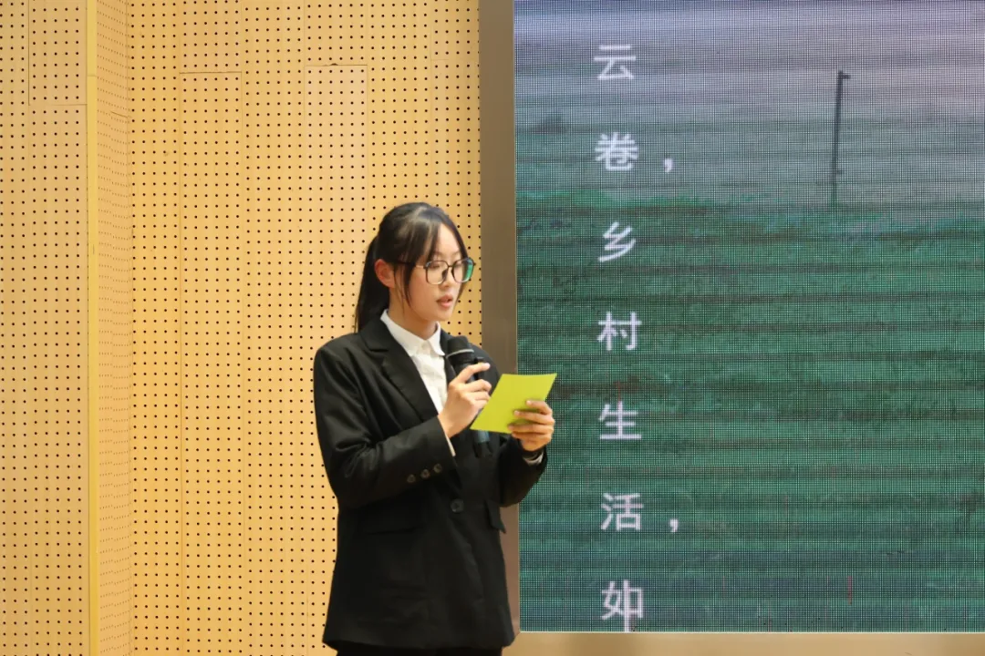 许鑫翠同学讲述自己在丁冒村参加乡村振兴实践活动的经历,呼吁更多的同学学以致用,加入到乡村振兴的队伍中来。
