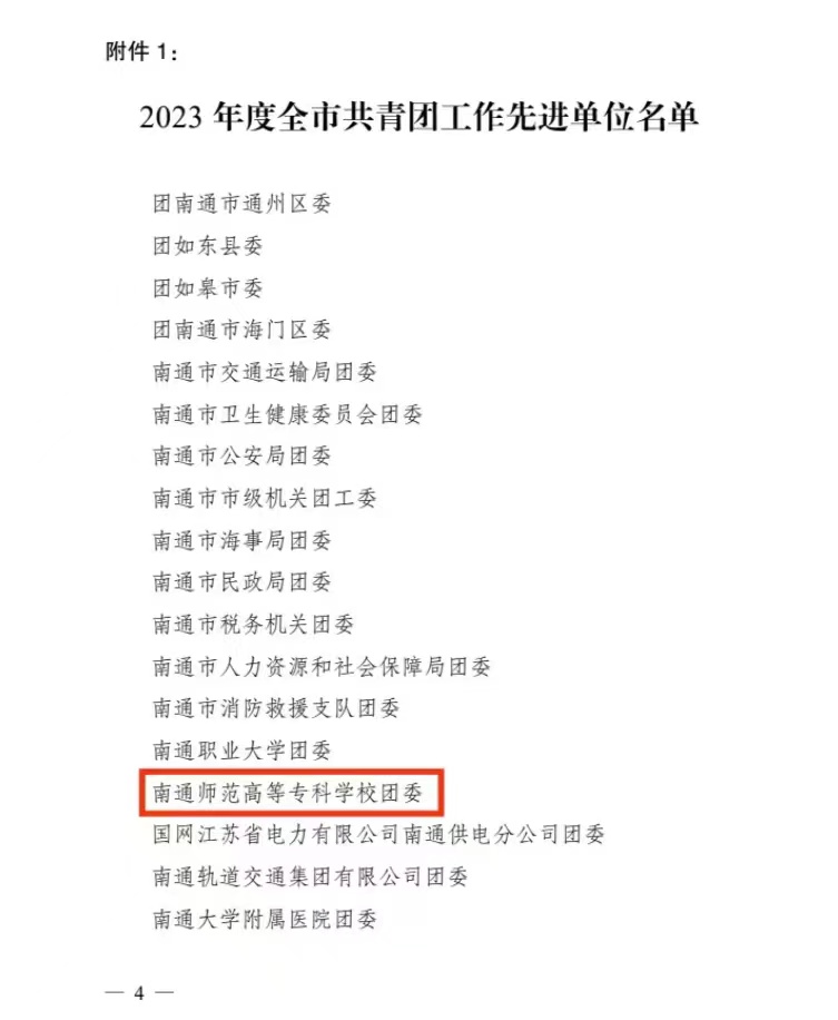 5月6日,共青团南通市委举办了“追江赶海 青春竞答”——南通市纪念五四运动105周年主题团日活动。活动中宣读了全市29家共青团工作先进单位名单,我校被授予“2023年度全市共青团工作先进单位”称号,这也是我校团委连续五年获此殊荣。
