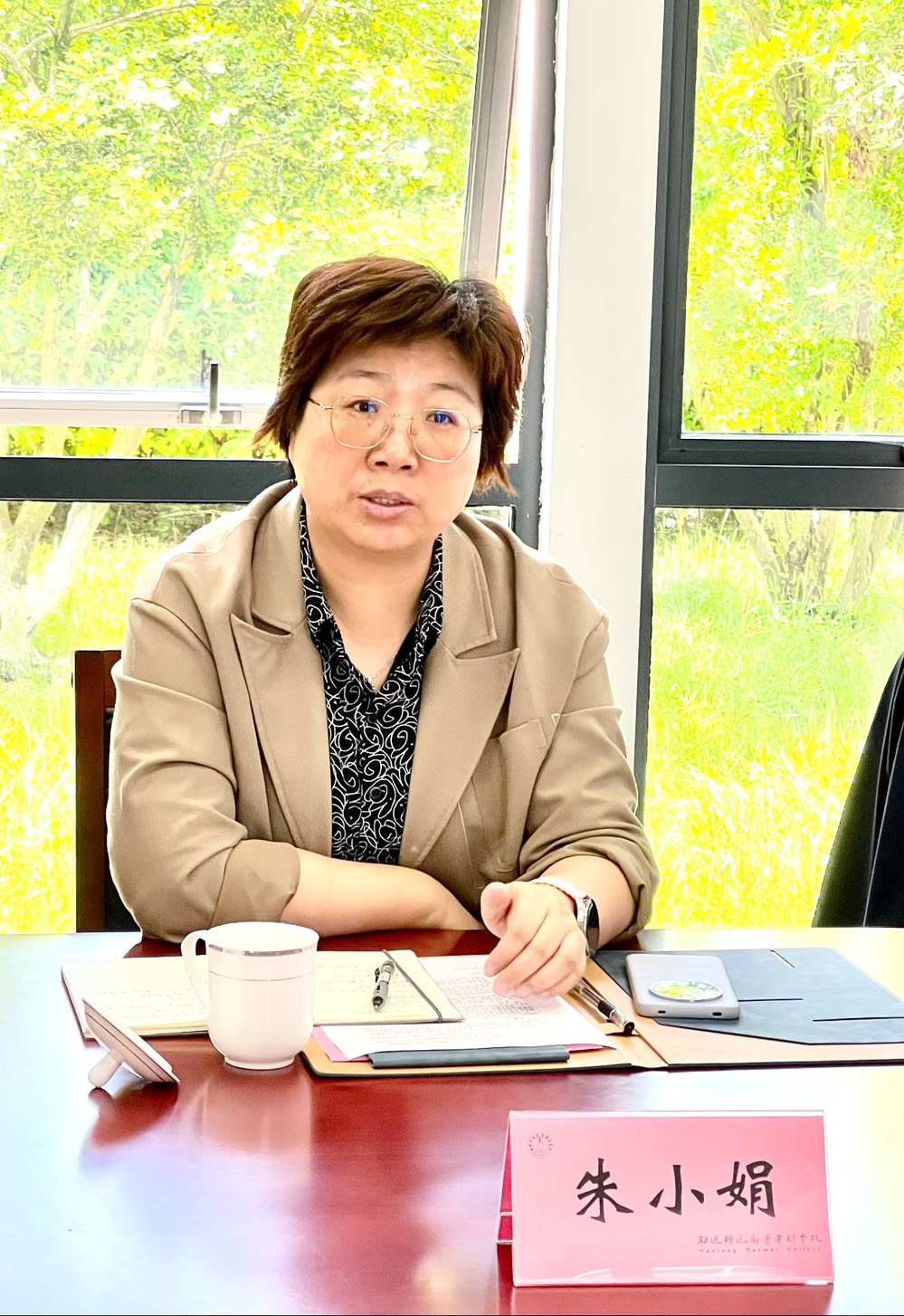 朱月萍对朱小娟一行来访表示热烈欢迎,她详细介绍了我校的办学历史、专业特色、人才培养、招生录取、本科贯通培养及学生转本等情况。