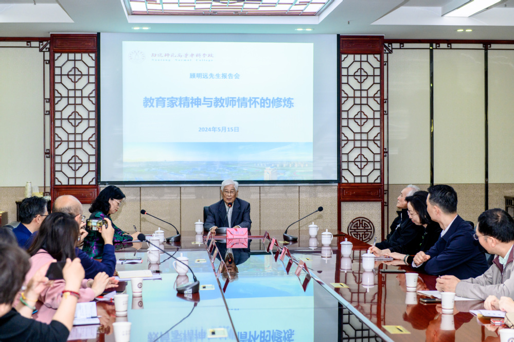 盎然初夏,榴花绽放,我校建校122周年系列活动的首场活动拉开序幕。5月15日,当代著名教育学家、新中国比较教育学科创始人之一、中国教育学会名誉会长、北京师范大学资深教授、博士生导师顾明远先生莅临我校参观指导,并带来精彩的学术报告。原国家督学、原江苏省教科所所长成尚荣先生,北京明远教育书院理事、明远未来教育研究院理事周航,南通市教育局局长成宾,南通市教师发展学院院长孙亚丽,南通市教育局办公室副主任吴剑锋,我校党委副书记、校长朱月萍,校党委委员、副校长都樾陪同参观座谈,朱月萍主持学术报告会,初等教育学院师生代表参加学术报告会。