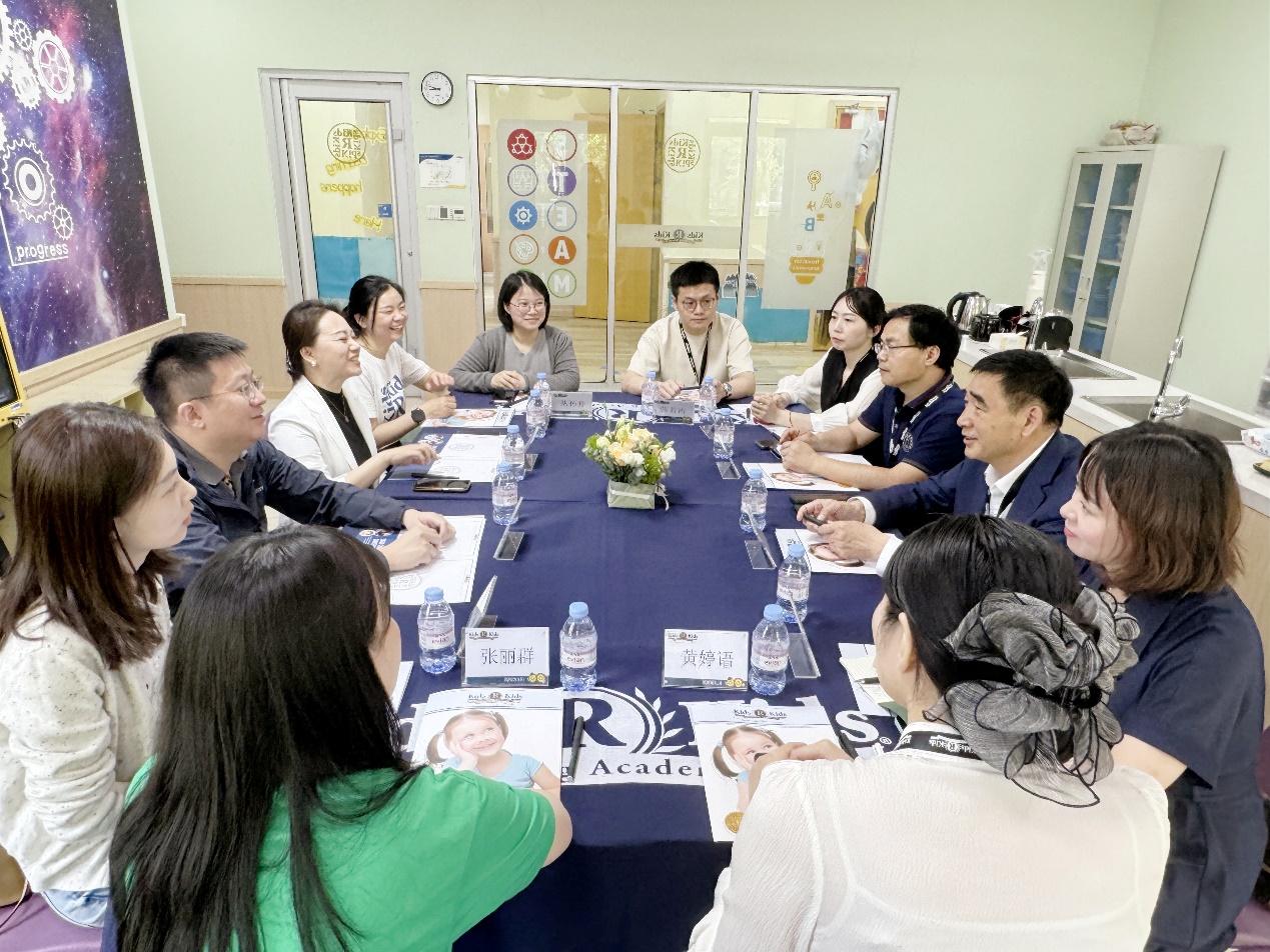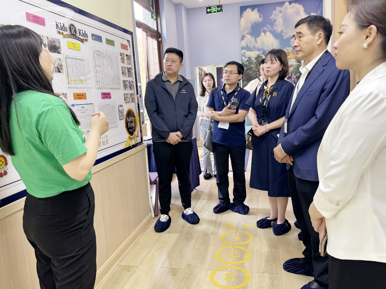 刘锋一行首先参观了凯斯幼儿园园所环境,然后进行了座谈交流。夏子君园长详细介绍了幼儿园的发展现状、教育资源配备、特色课程设计及教师队伍培养等。双方就产教融合、托幼一体化等内容进行了深入的交流。