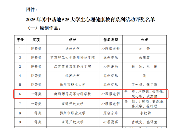 近日,从江苏省教育厅传来喜讯,南通师范高等专科学校体育学院精心打造的心理微电影作品《焦点交易》,在全省高校“五育润心 沐光同行”心理健康教育优秀作品评审中脱颖而出,荣膺省级一等奖。这一荣誉不仅是对创作团队专业素养的肯定,更是学校扎实推进心理育人工作的生动展示。