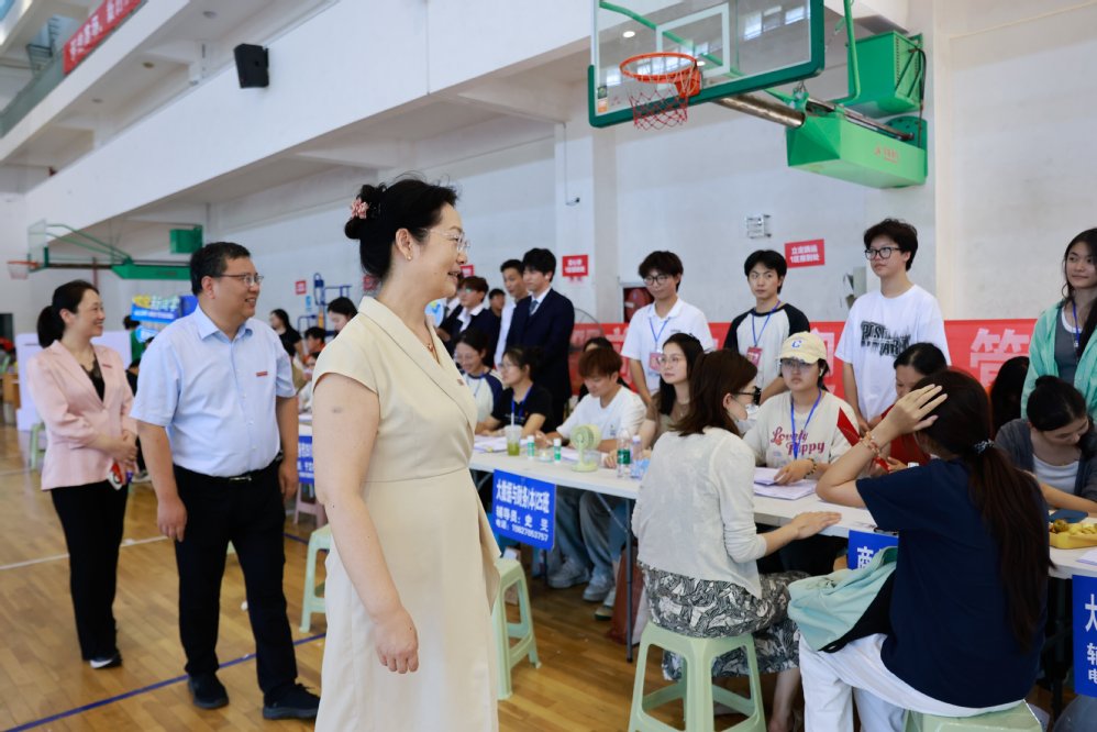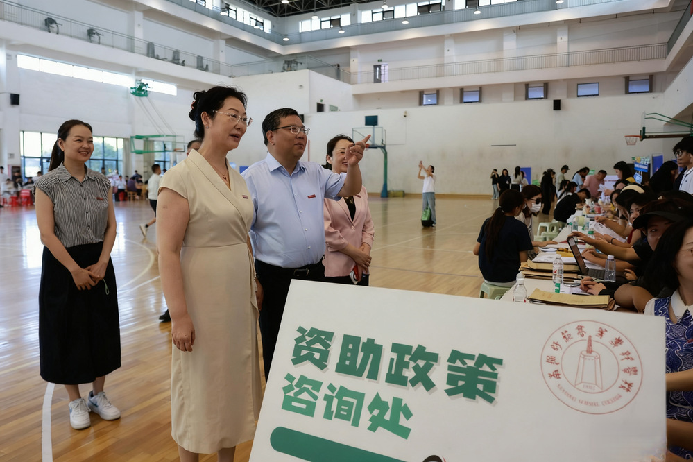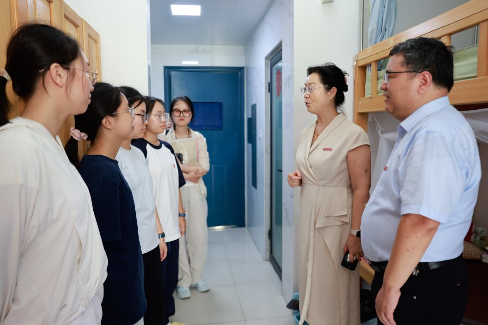 一次亲切交流——校党委书记陈玉君、校长岳峰、副校长杭斌、副校长赵园园、宣传部部长马文娟等领导班子成员先后深入各校区迎新报到点、学生宿舍,亲切看望新生,并与他们热情交流。“从哪里来?”“报到顺利吗?”“生活上还有什么困难?”每到一处,校领导都细致询问同学们的实际情况,并勉励他们尽快适应新环境、珍惜大学时光、树立远大志向。在七年制定向生宿舍,领导们既记挂着同学们的“未来”:“你们是未来的教育者,要做照亮别人的‘灯塔’,带动学校其他同学一起进步,以后为南通基础教育添份力”;更牵挂着大家的“日常”:“离开了父母,要学会独立、学会生活,要关爱室友,学会照顾他人……”。