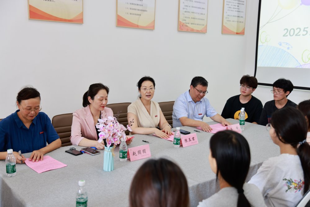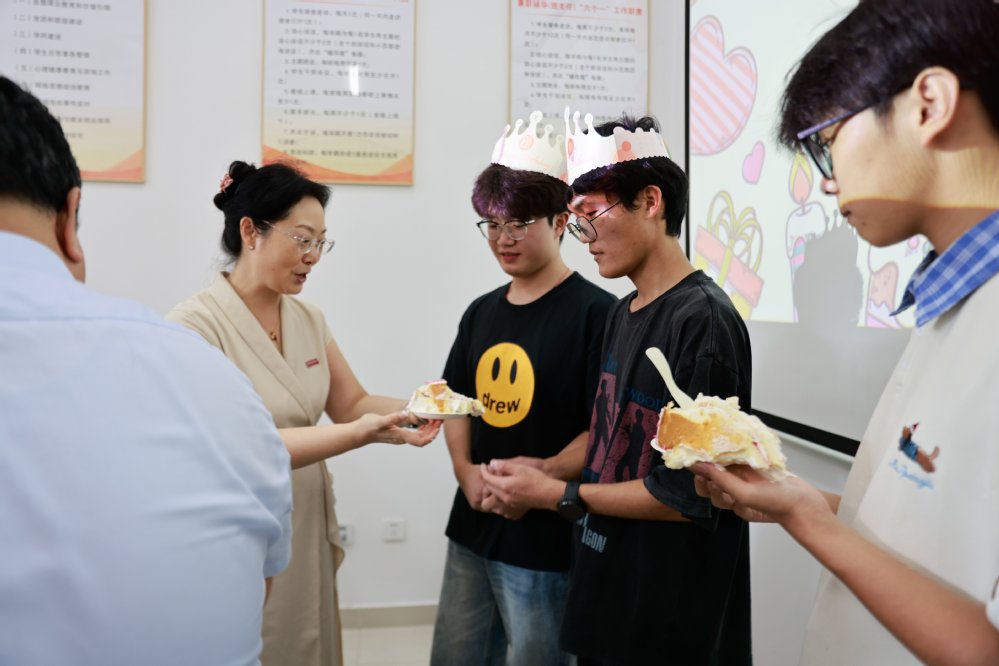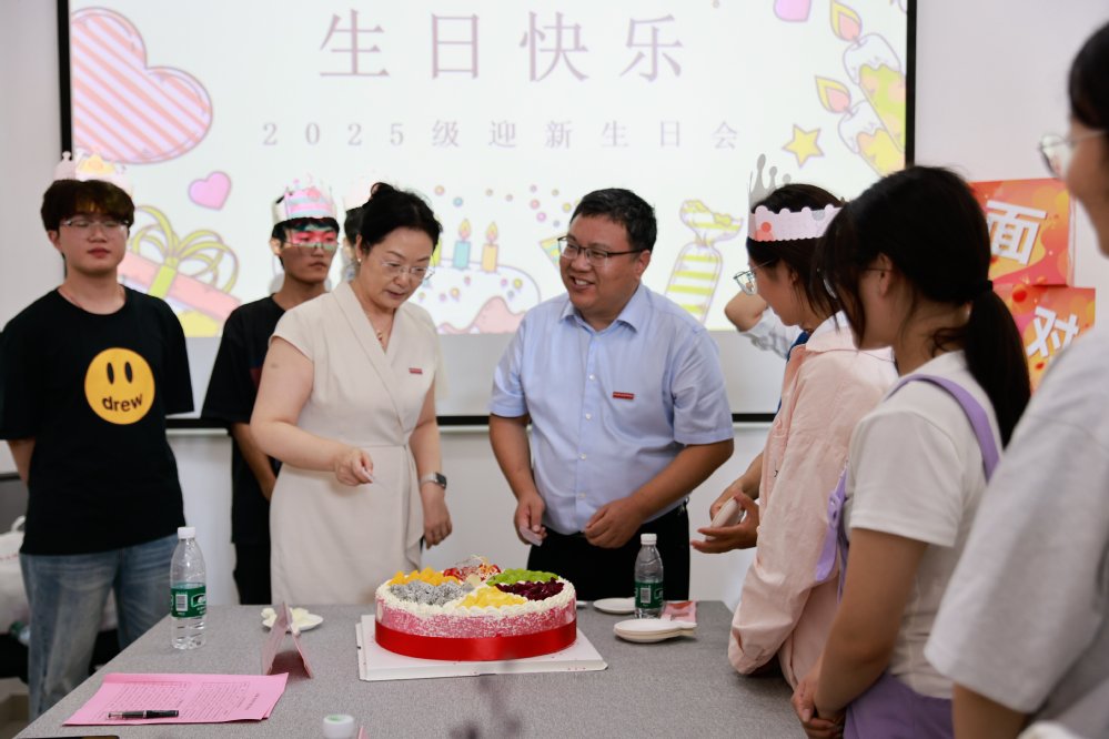 一次校园生日——学生社区辅导员联合工作站,“2025级新生书记校长面对面”活动在这里举行,陈玉君书记、岳峰校长、赵园园副校长不仅为新生代表送上装满文具的开学大礼包,更悄悄记下了当天过生日的同学——当生日蛋糕被推上来,现场瞬间被暖意包围。几位过生日的同学感动不已,一名新生表示:“这是我第一次在学校过生日,没想到学校会记得,非常感动!”校领导们寄语新生,希望他们“做好人,读好书”,合理规划人生道路。