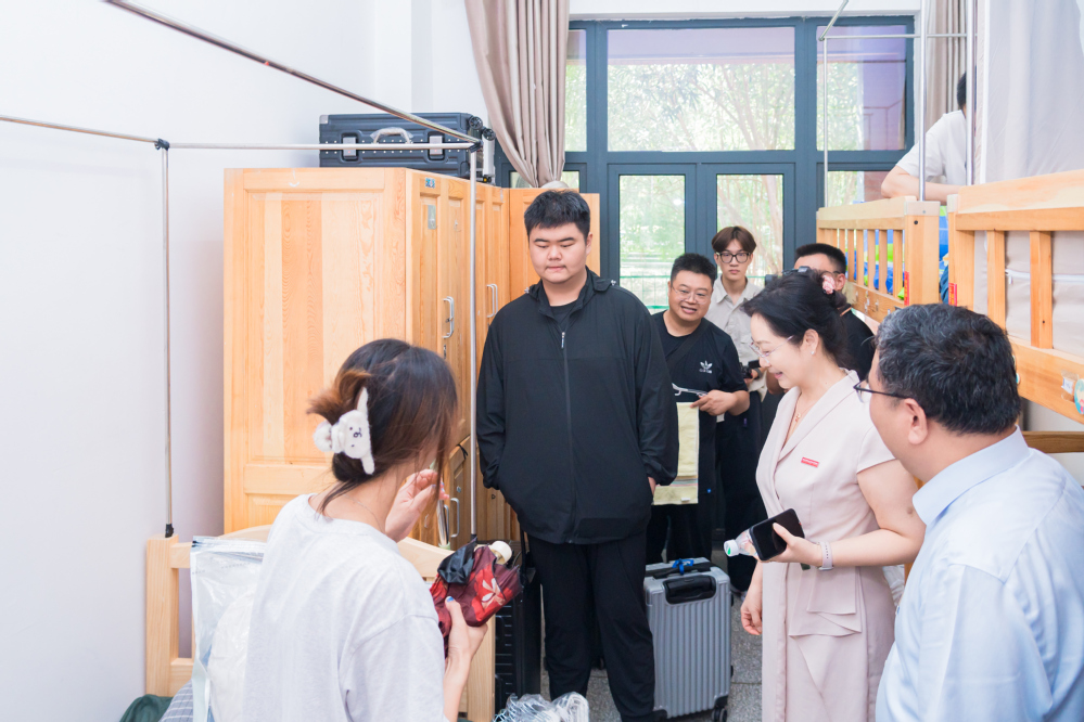一份特殊关照——特别令人感动的是,学校高度重视特殊学生群体的关怀工作。在此之前,已为一名特殊的新生量身定制了加宽加固床位。报到当天,校领导专程前往宿舍查看设施情况,并郑重向家长承诺:“请放心,学校一定会像父母一样照顾好每一个孩子。”家长深受感动,对学校的贴心安排表示高度认可和感谢。